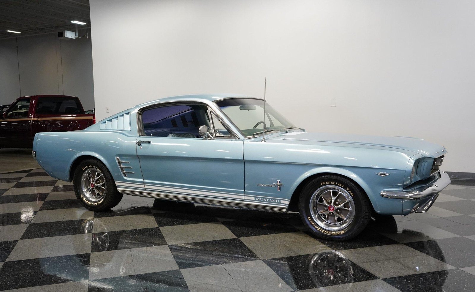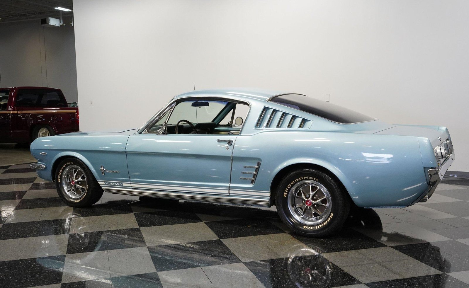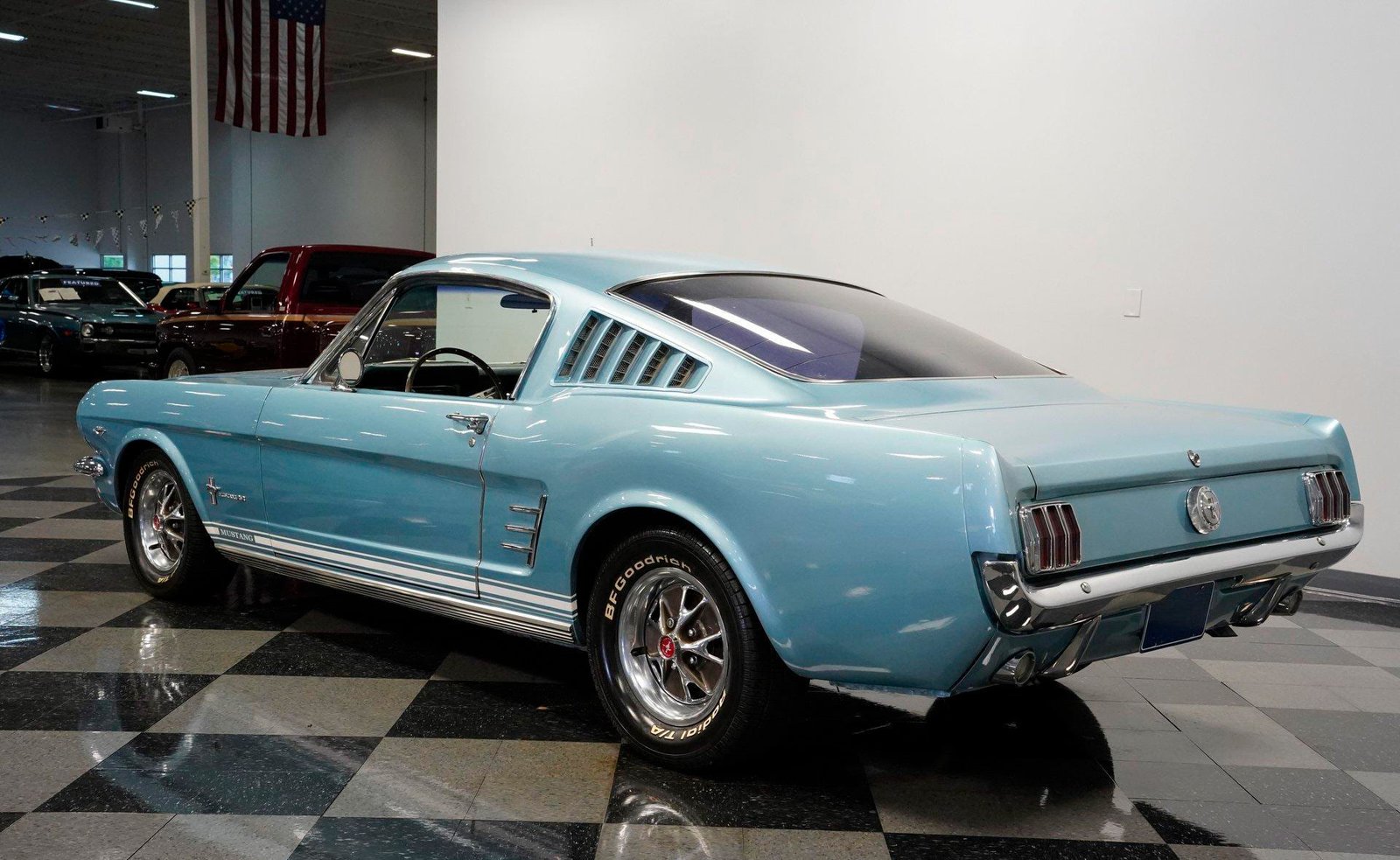 A beautifully finished 1966 Ford Mustang 2+2 Fastback in factory Q7 Brittany Blue — powered by a smooth 289 V8 with C4 automatic, power steering, power brakes, and cold factory-style air conditioning.