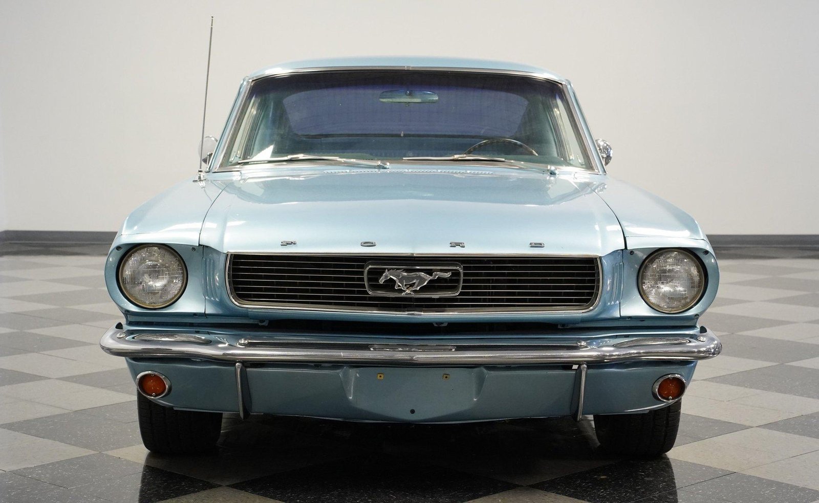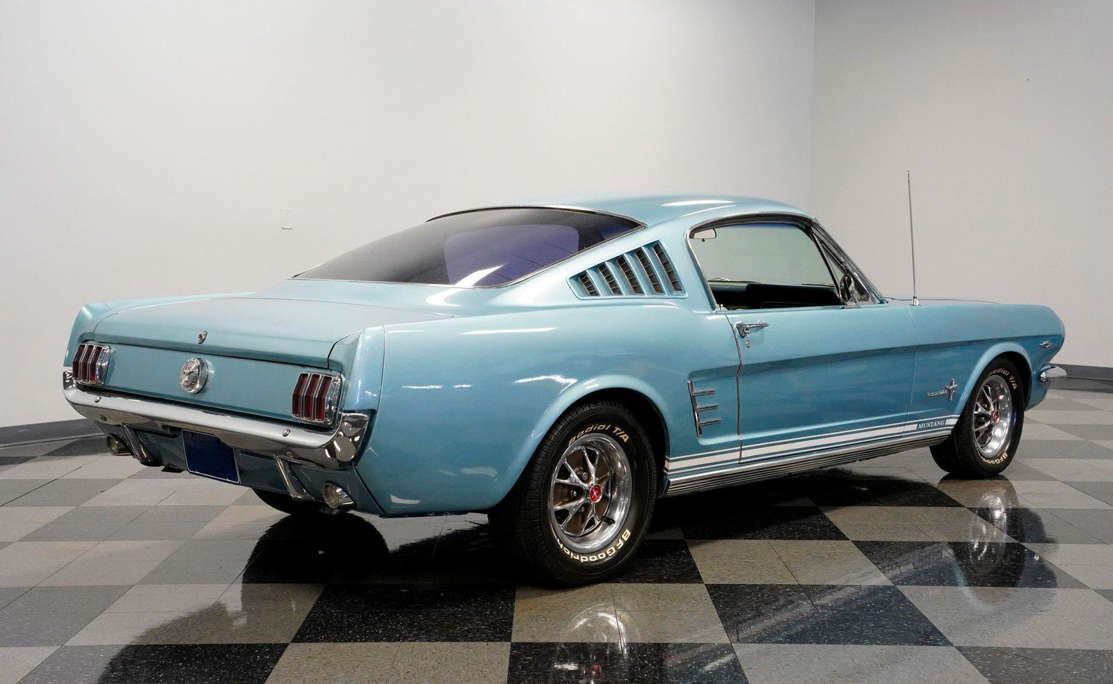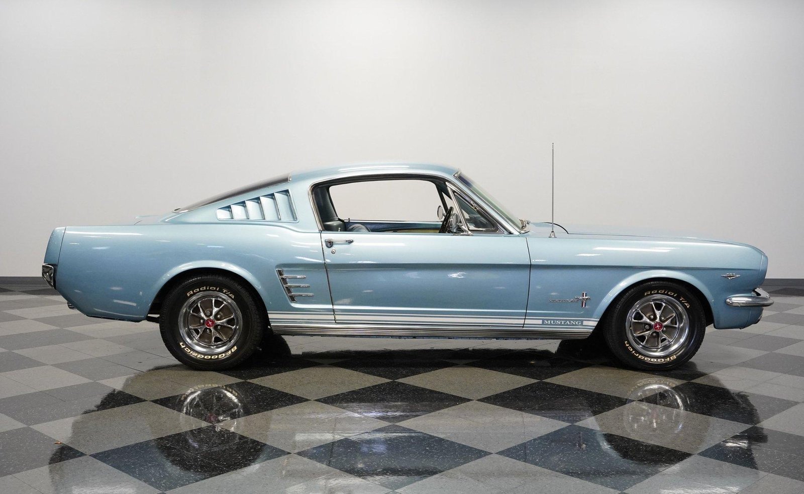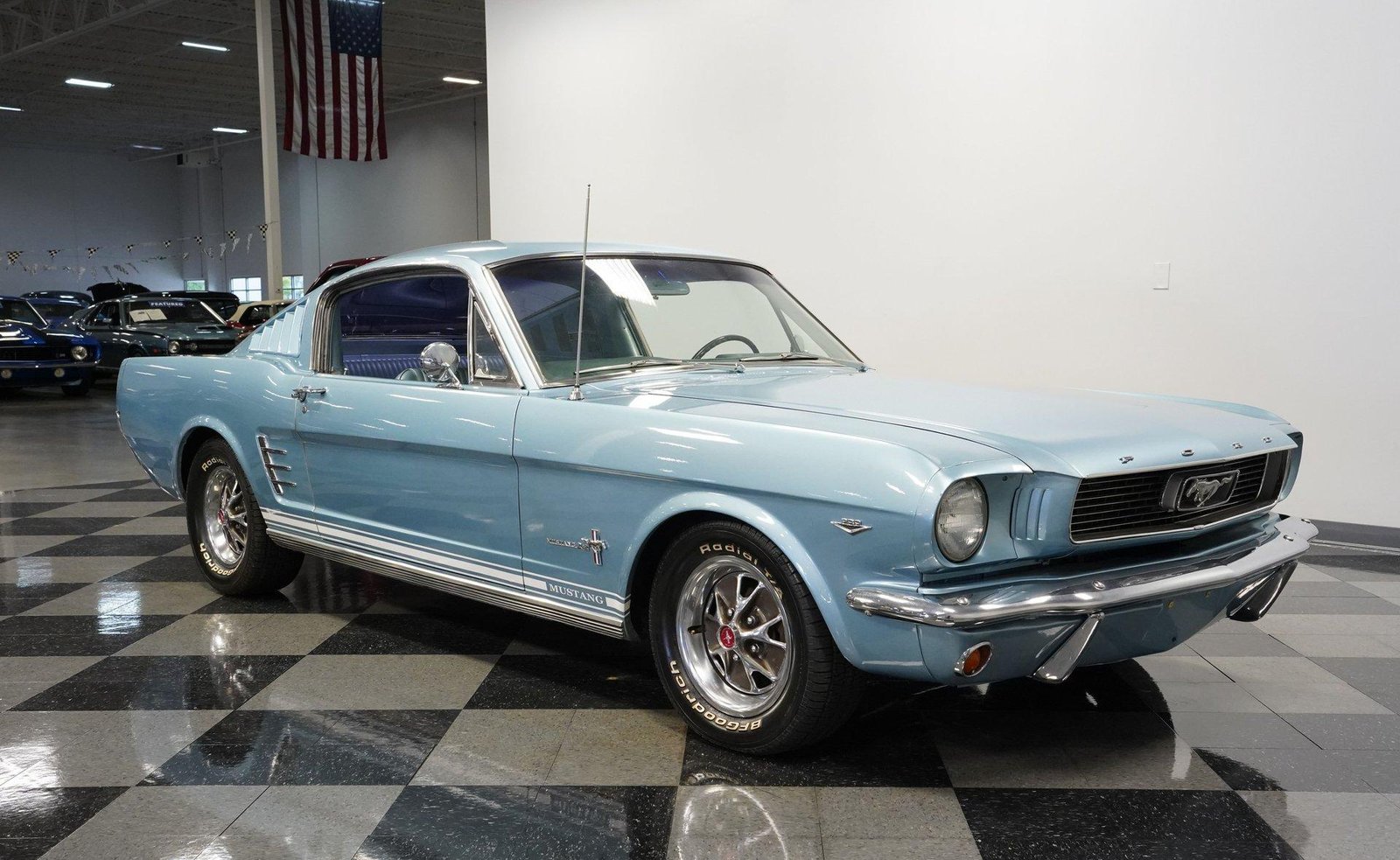 A beautifully finished 1966 Ford Mustang 2+2 Fastback in factory Q7 Brittany Blue — powered by a smooth 289 V8 with C4 automatic, power steering, power brakes, and cold factory-style air conditioning.