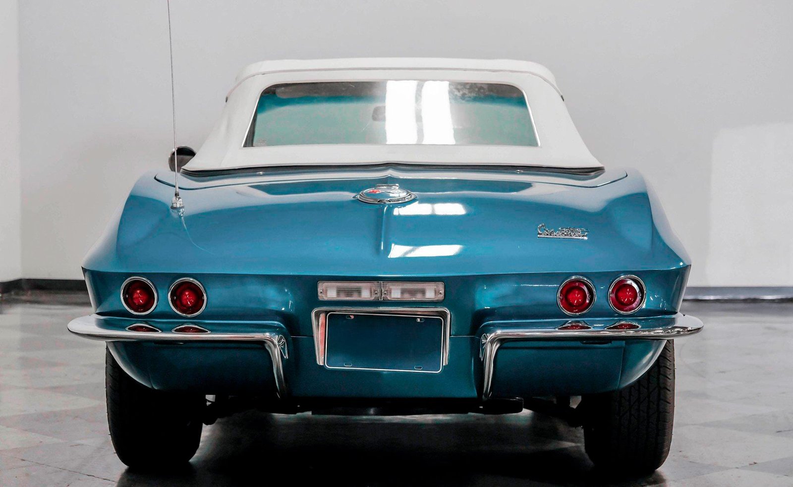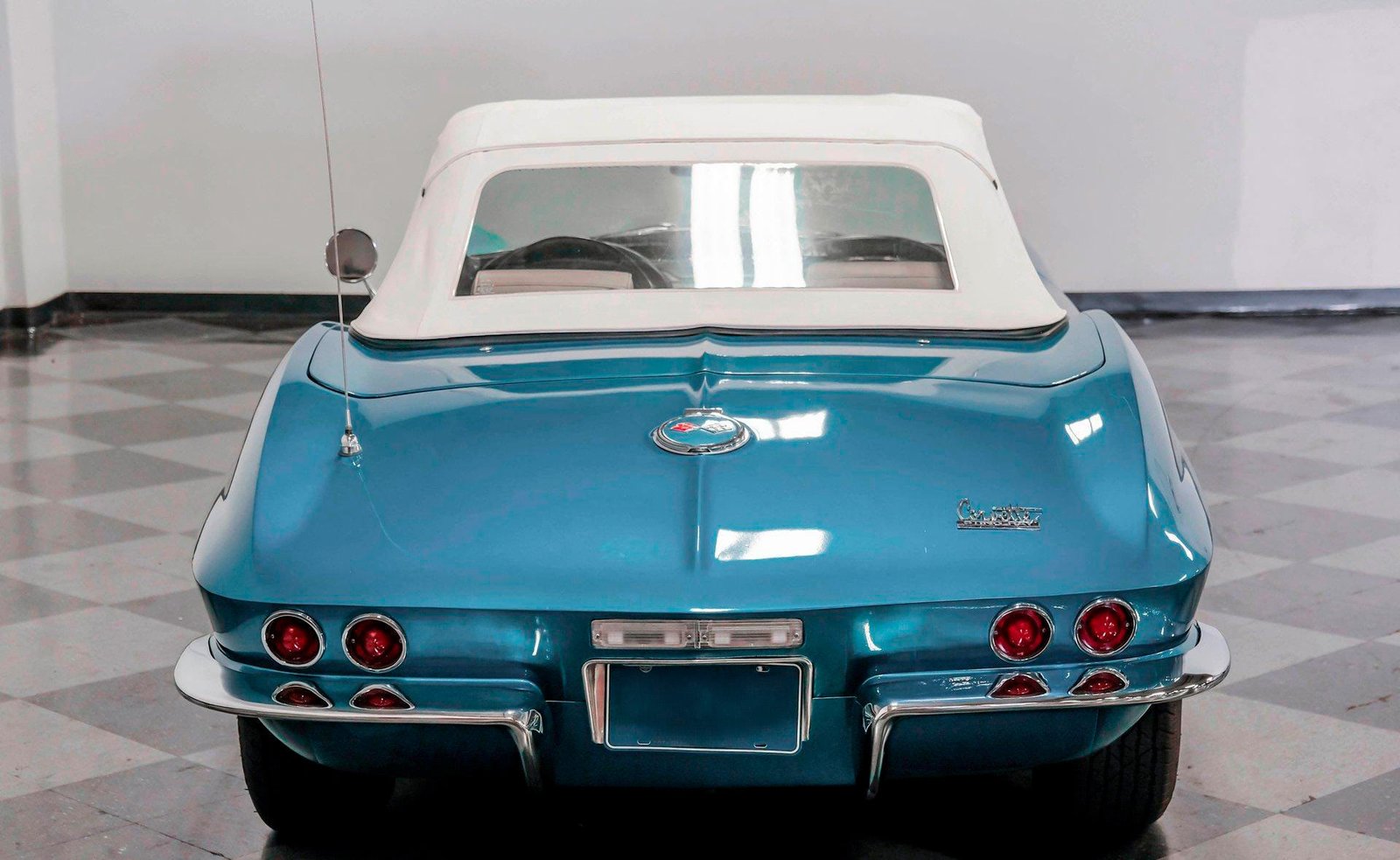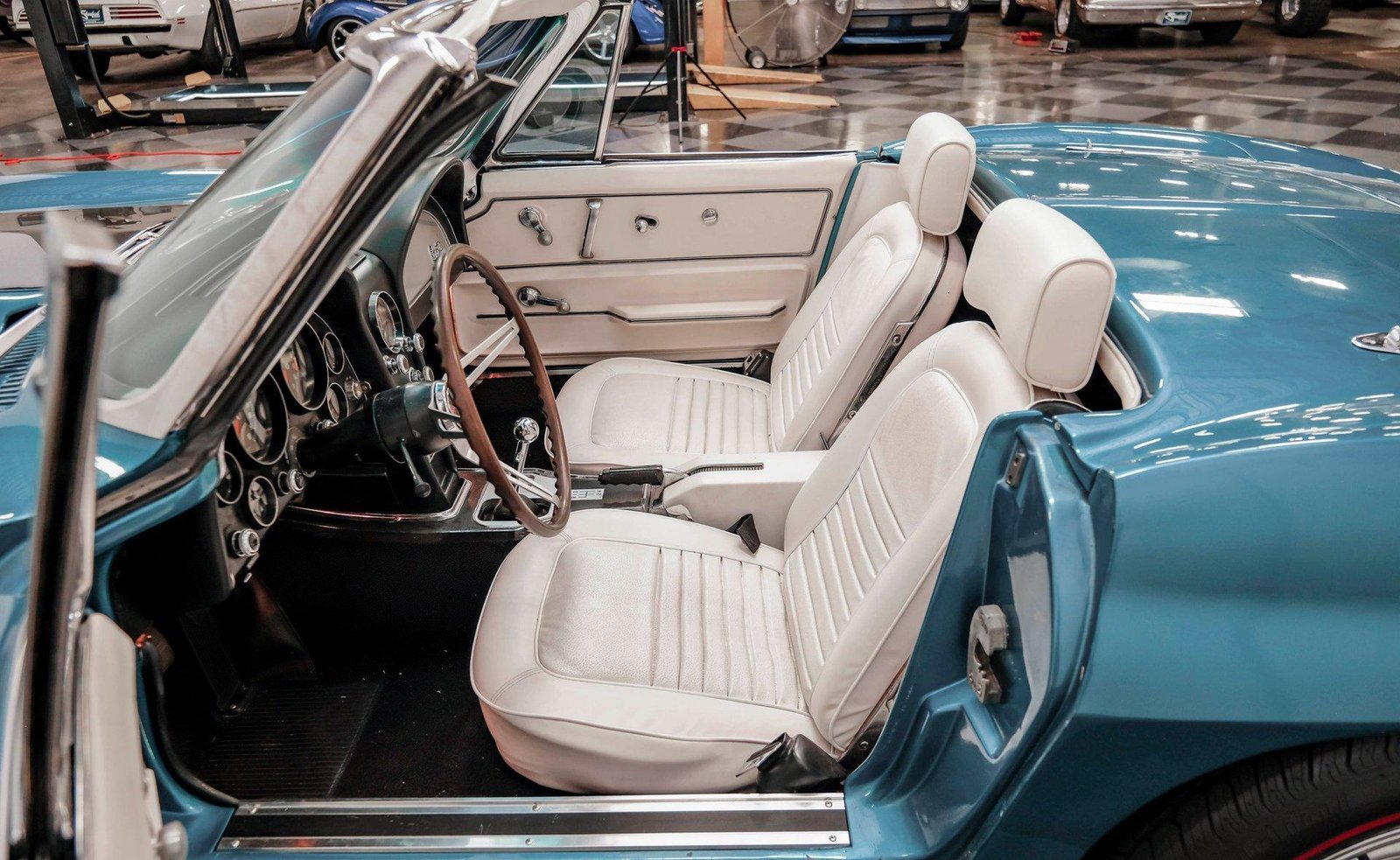 A beautifully presented 1967 Chevrolet Corvette 454 Convertible, finished in Marina Blue with a black stinger hood and white soft top — combining big-block muscle, four-speed control, and true C2 roadster appeal.