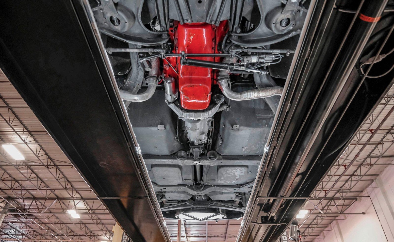 Engine & Drivetrain: 454 ci V8 with Holley carburetor, Edelbrock intake, HEI ignition, and 4-speed manual transmission powering the rear Corvette differential. Side pipes with baffled straight pipes deliver the signature C2 exhaust tone.