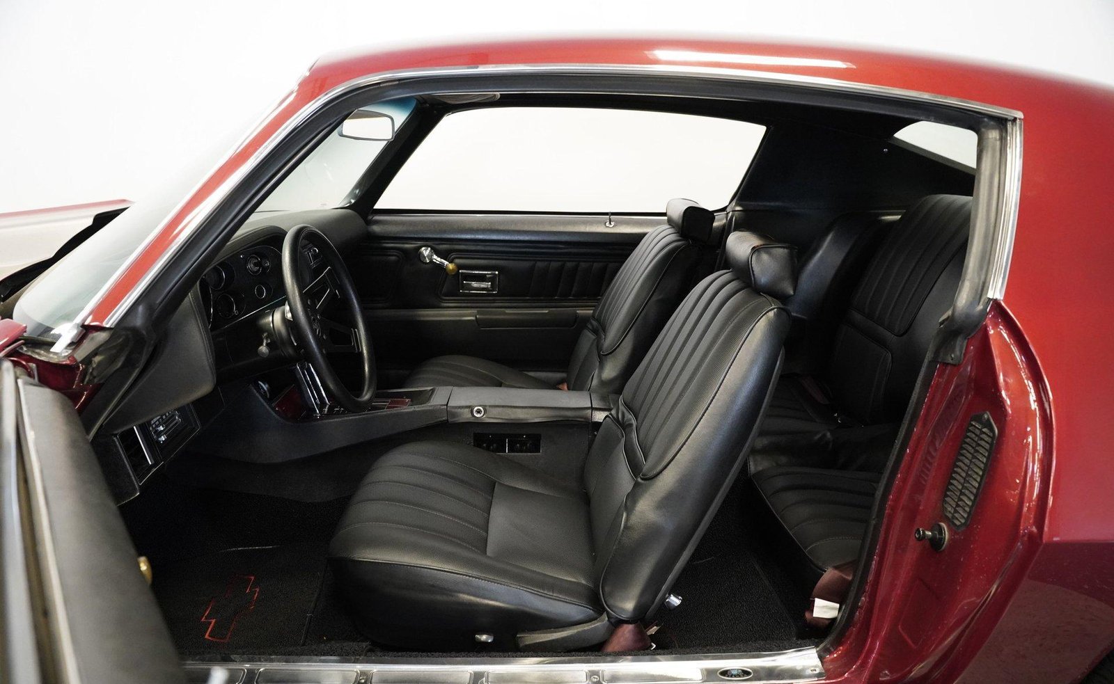 Exterior: Maroon exterior with cowl hood, chin spoiler, clean chrome bumpers, and 15″ retro alloy wheels with BF Goodrich T/A tires for a period-correct stance.